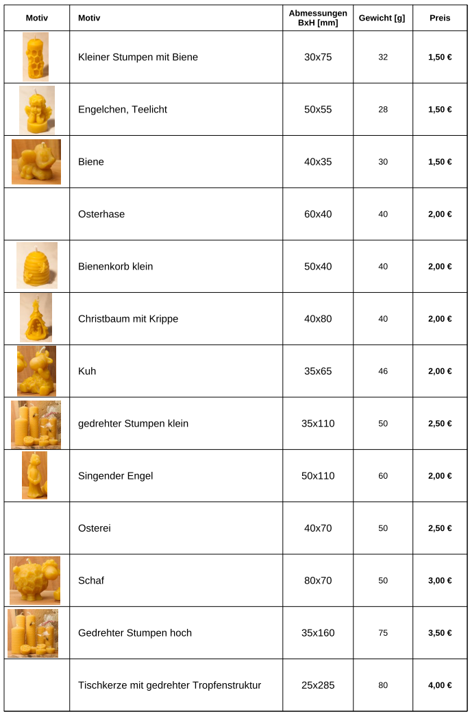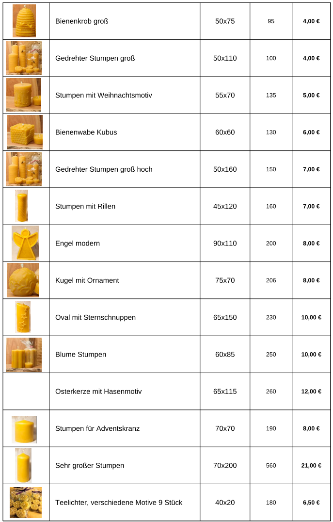 Mit einer echten Bienenwachskerze holst Du dir ein Stück Natur, Handwerkskunst und Bienenfleiß nach Hause – duftend, leuchtend und vollkommen natürlich.Kerzenpreise